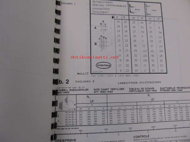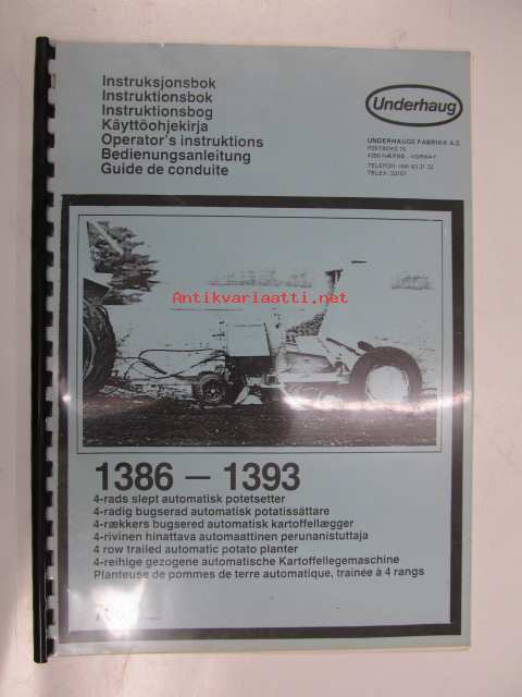 Underhaug 1386-1393 4-rivinen hinattava automaattinen perunanistuttaja -käyttöohjekirja