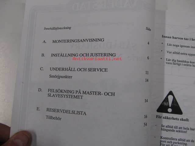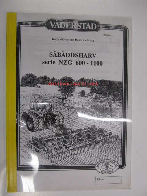 Väderstad Såbäddsharv serie NZG 600 - 1100 -instruktioner och reservdelslista