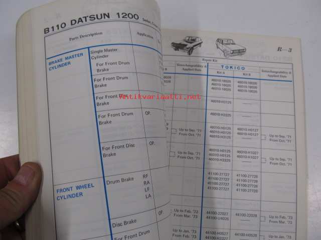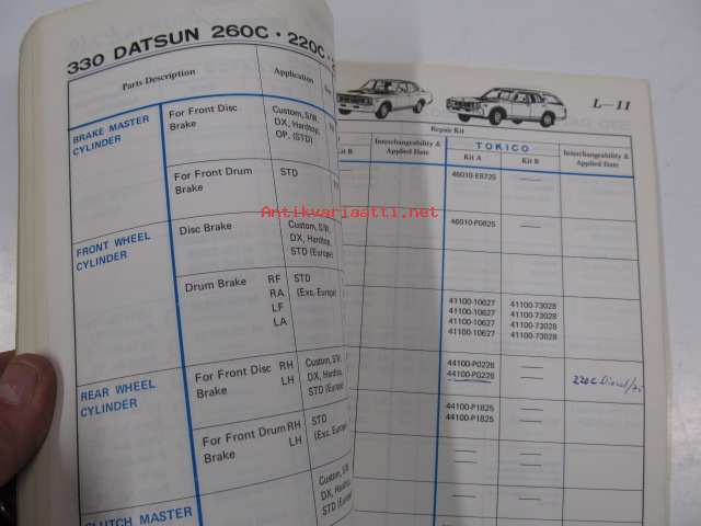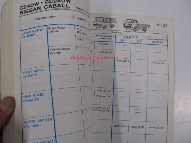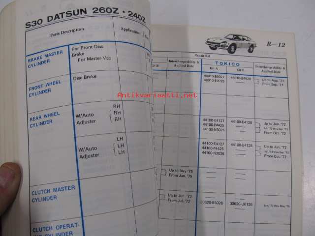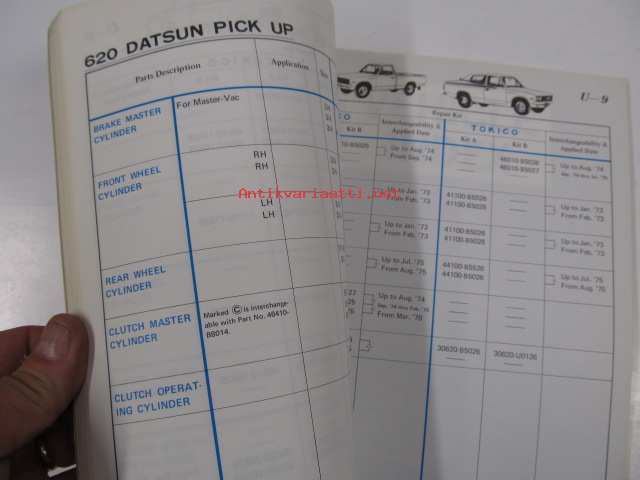 Datsun cylinder catalog (sales guide 1976) brake cylinders, clutch cylinders, repair kits