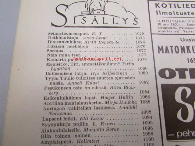 | Saatavilla | 2 kpl | | Julkaisuvuosi | 1962 | | Sivuja | 72 | | Kunto | K3 | | Sidonta/painoasu | Lehti | | Kielet | Suomi |
