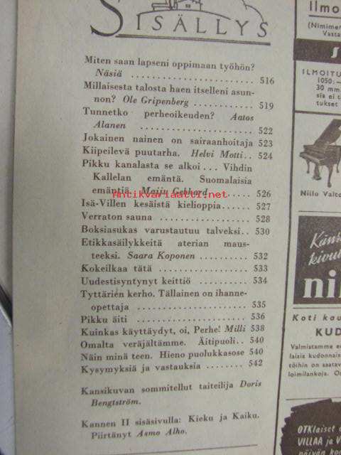 Kotiliesi 1950 nr 16 Elokuu 1950 - Vihti -Kallela kanala artikkeli kuvineen, Verraton sauna v 1950, Etikkasäilykkeitä, Ami-Cola -mainos, Uusi asuntotuotanto...