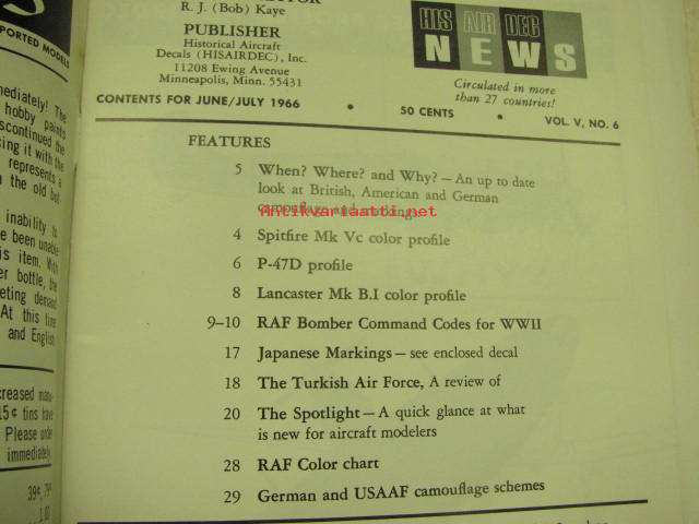Historical Aircraft Decal News 1966 june/july