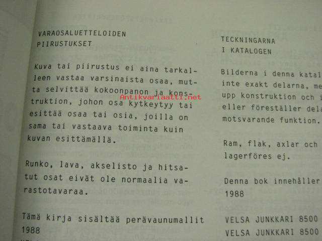 Velsa-Junkkari 8500 TV Autobalans -käyttöohje ja varaosaluettelo