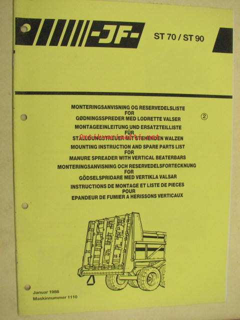 JF ST 70 / ST 90 Mounting instructions and Spare Parts List serial nr 1110- -varaosaluettelo