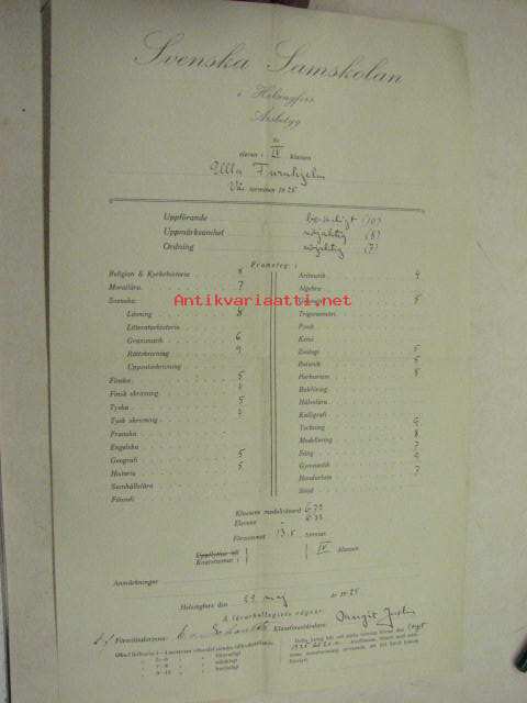 Svenska Samskolan i Helsingfors, 192523 x 37 cm todistus.