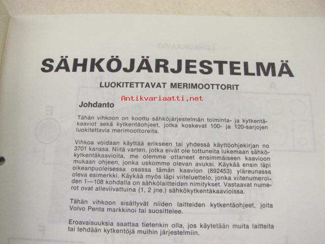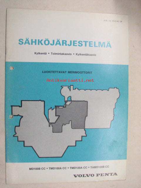 Volvo Penta MD100B CC, TMD100A CC, TMD120A CC, TAMD120B CC luokitettavat merimoottorit Sähköjärjestelmä kytkentä, toimintakaavio, kytkentäkaavio