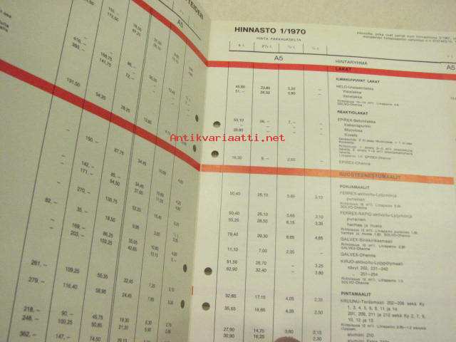 Teknos-Maalit Oy vakiotuotteiden hinnasto 1970 nr 1
