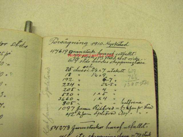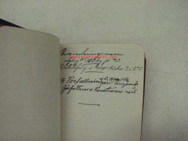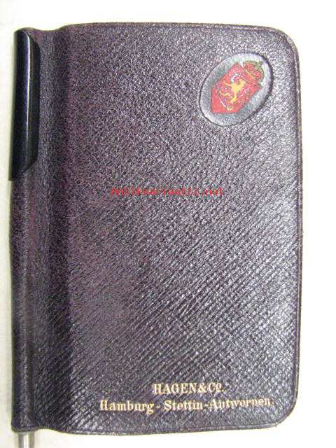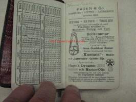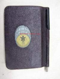 8 x 11 cm almanakka / muistikirja, mukana myös lyijykynä, runsaasti muistiinpanoja. Huomaa kaunis vaakunapainatus.