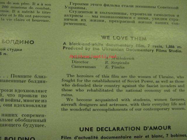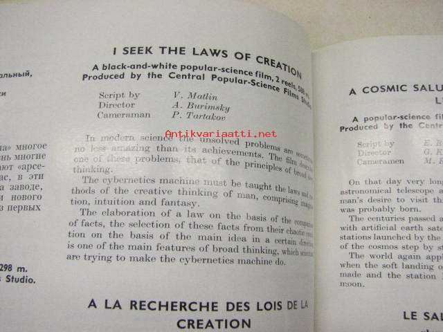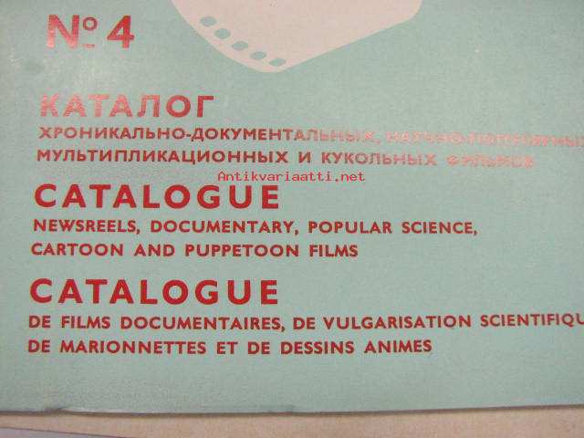 Sovexportfilm Catalogue nr 4 - Newsreels, documentary, popular science, cartoon and puppetoon films -neuvostoliittolaisia lyhytfilmejä, dokumentteja ja elokuvia