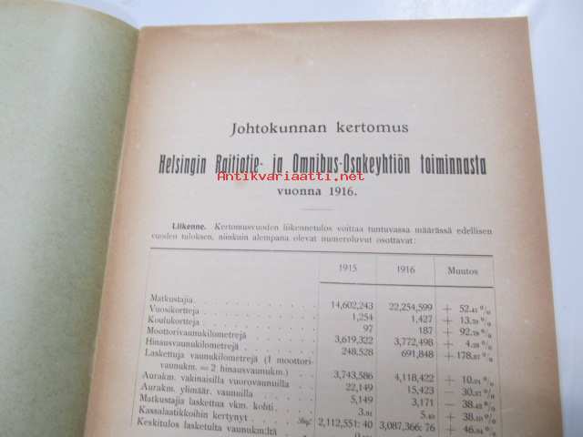 Helsingin Raitiotie- ja Omnibus Osakeyhtiö johtokunnan kertomus vuodesta 1916