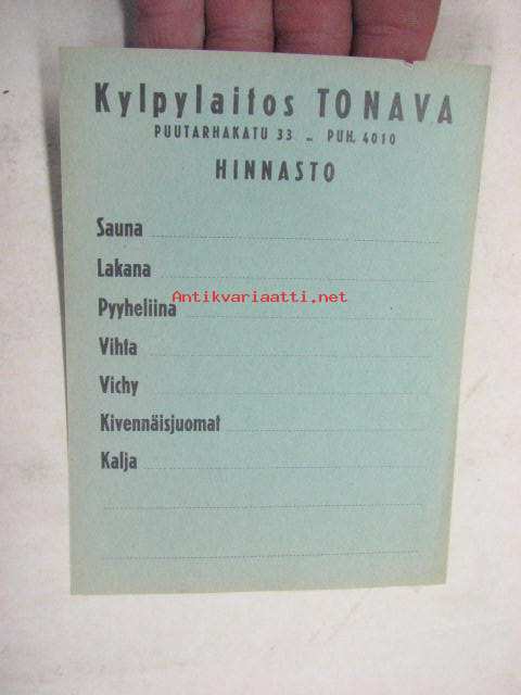 Kylpylaitos Tonava, Puutarhakatu 33 Turku - hinnasto