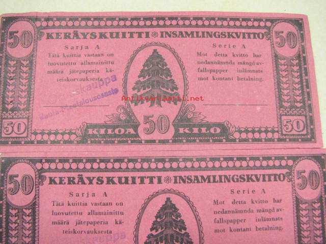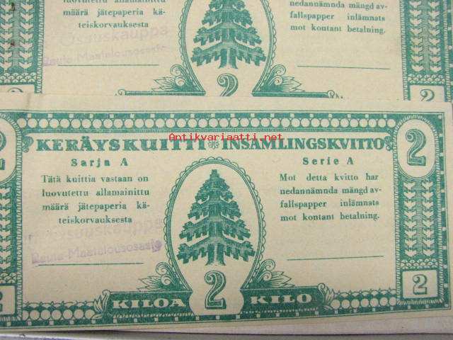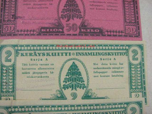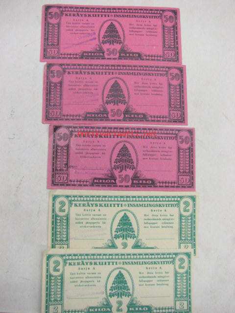 Jätepaperin keräyskuitti /avfallspapper, insamlings kvitto -5 kpl kuitteja