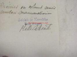 | Saatavilla | 1 kpl | | Julkaisuvuosi | 1926 | | Sivuja | 1 | | Kunto | K2 | | Sidonta/painoasu | Pienpainate | | Kielet | Suomi |