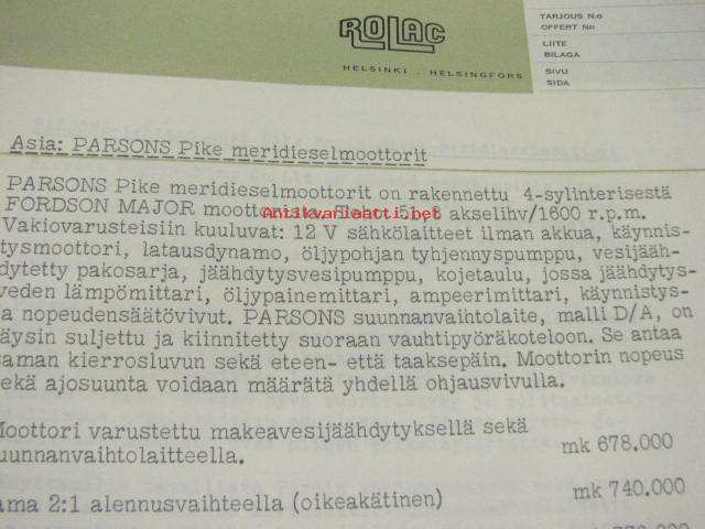 Parsons Pike with Marinomatic Marine Diesel Engines -myyntiesite