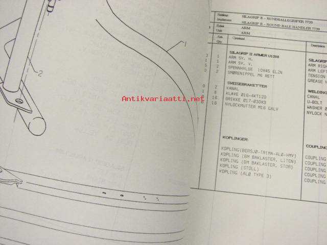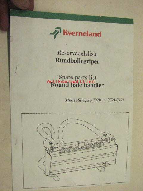 Kverneland Rundballegriper / Round bale handler Model Silagrip 7720 + 7721-7722 -spare parts list