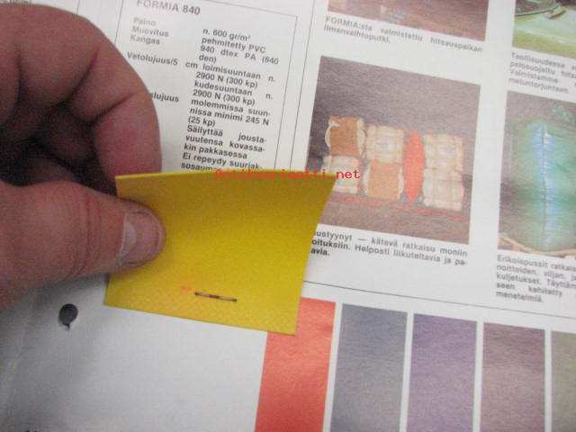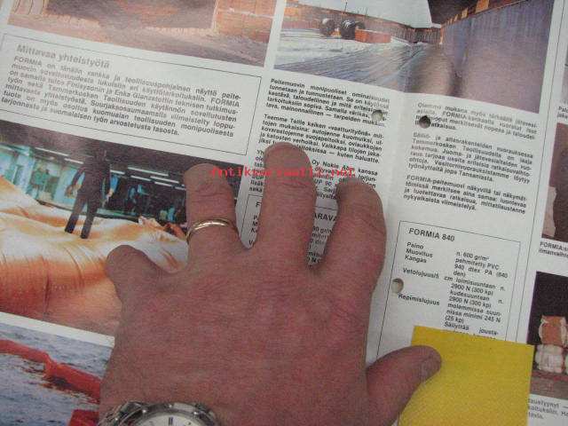 | Saatavilla | 1 kpl | | Julkaisuvuosi | 19?? | | Sivuja | 4 | | Kunto | K3 | | rei´itetty | | Sidonta/painoasu | Pienpainate | | Kielet | Suomi |