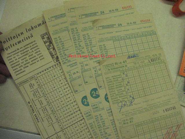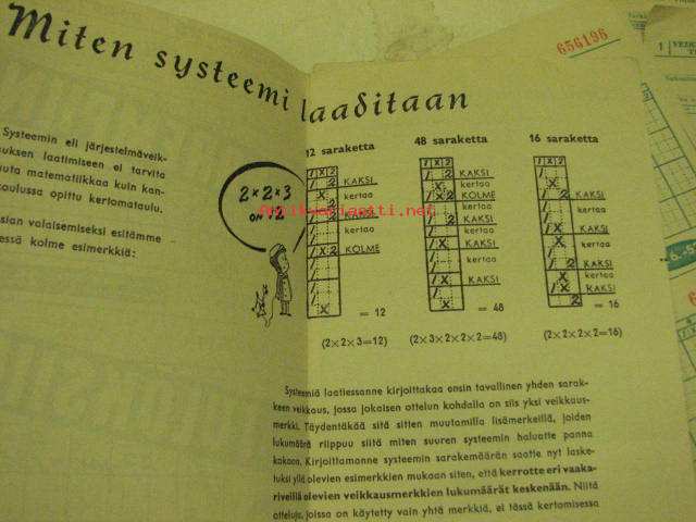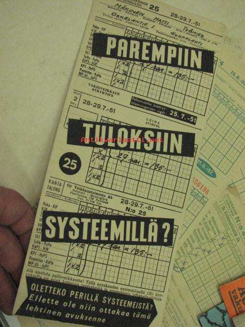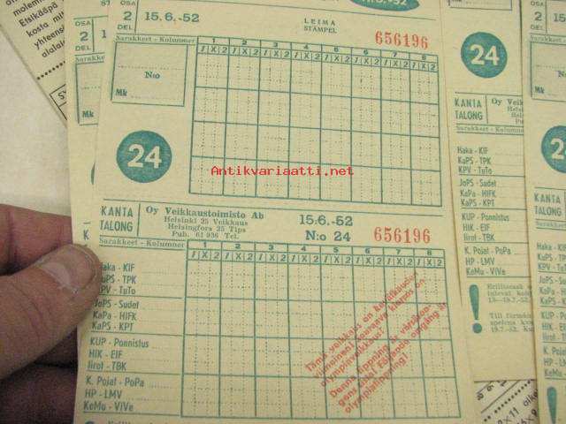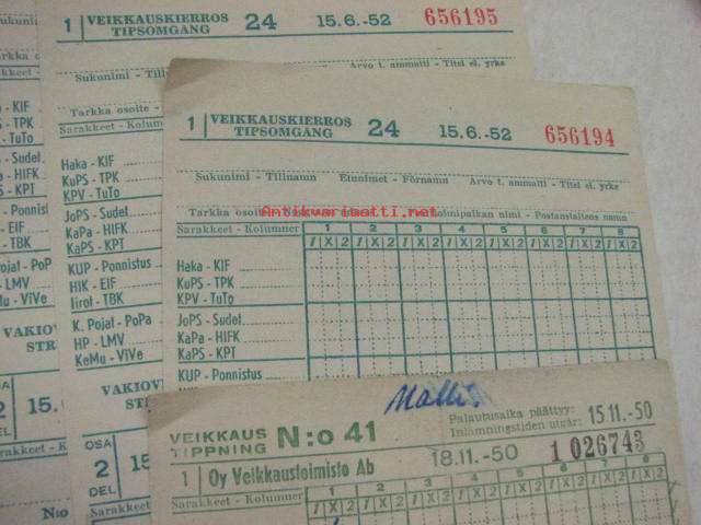 Oy Veikkaus Ab, 1952Erä veikkauskuponkeja ja systeemimainos.
