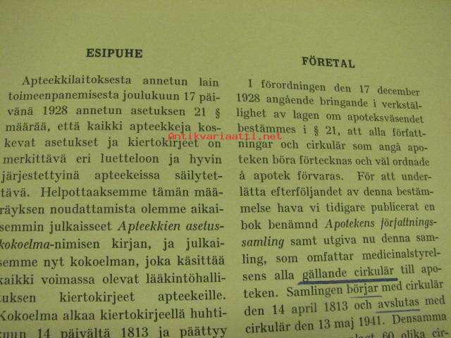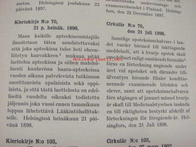 Lääkintöhallituksen kiertokirjeet apteekeille - Medicinalstyrelsens cirkulär till apoteken