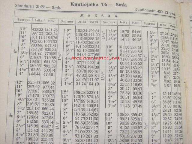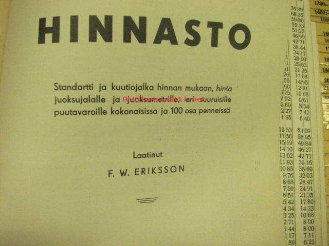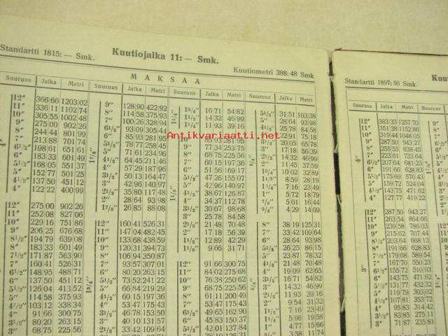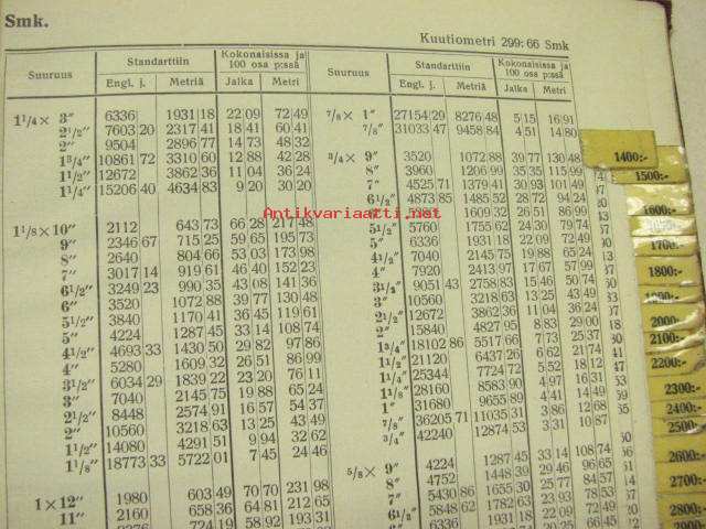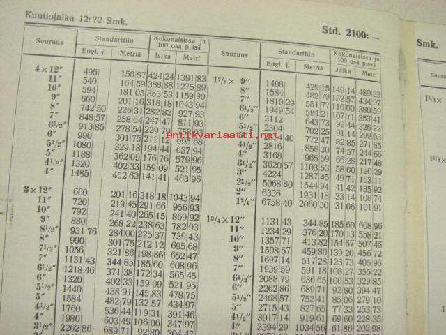 Sahatun puutavaran hinnasto standartti ja kuutiojalan hinnan mukaan...