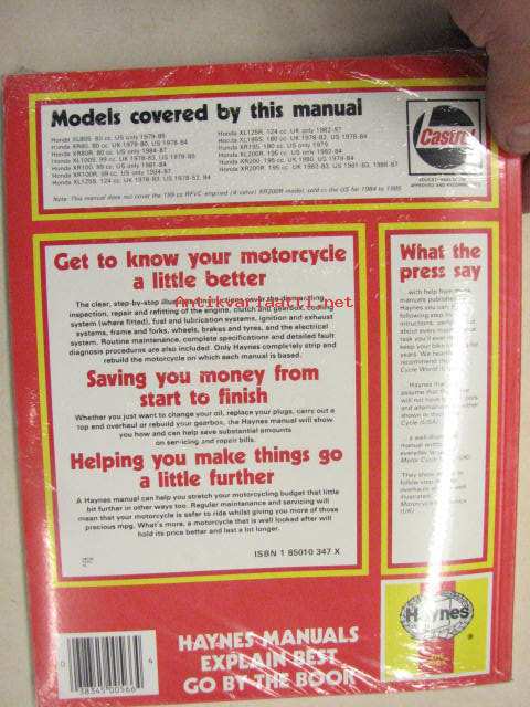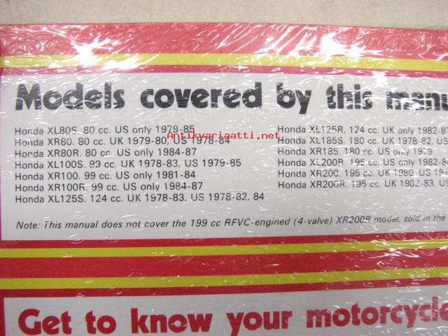 Honda XL/XR 80, 100, 125, 185 & 200 2-valve models 80cc-99cc-124cc-180cc-195cc. 1978-1987 Owner´s workshop manual -(omistajan) korjaamokäsikirja