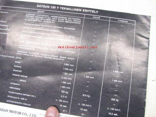 Datsun 120Y Finn Sedan, Farmari, Coupé -myyntiesite