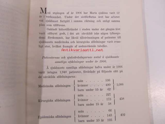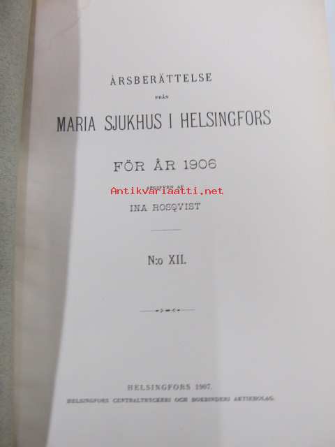 Årsberättelse från Maria sjukhus i Helsingfors för år 1906