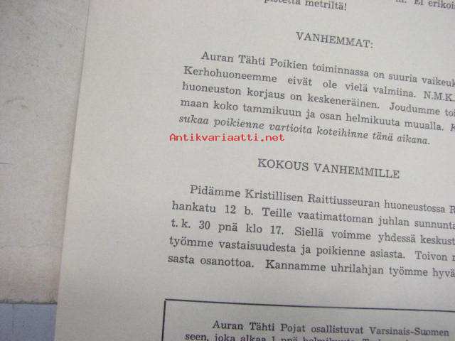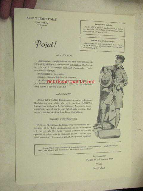 Auran tähtipojat (Turun NMKY:n partio-osasto) -ohjelma / tiedostuslehti 1949
