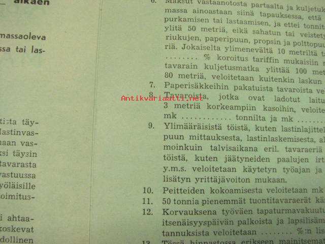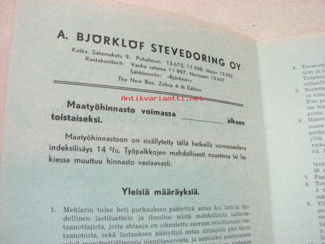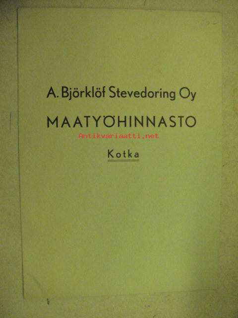 A. Björklöf Stevedoring Oy Maatyöhinnasto Kotka