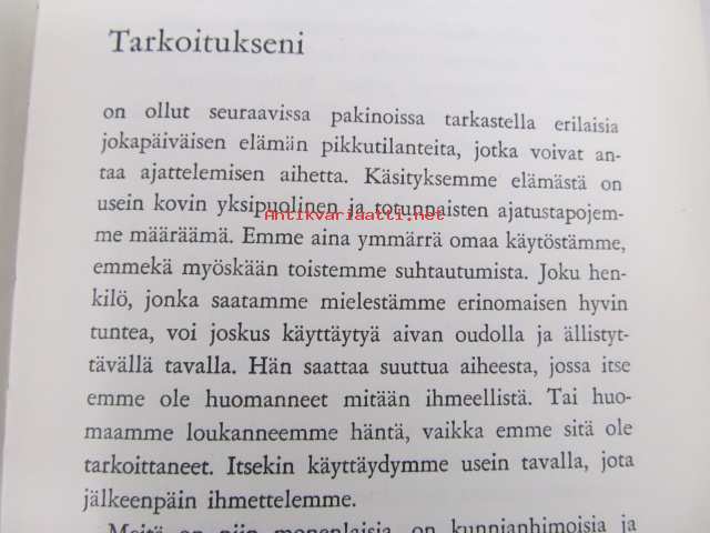 | Saatavilla | 1 kpl | | Julkaisuvuosi | 1963 | | Sivuja | 152 | | Painos | 4 | | Kunto | K3 | | Sidonta/painoasu | Sidottu (kovak.) | | Kielet | Suomi |