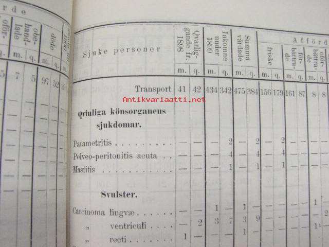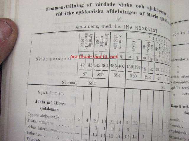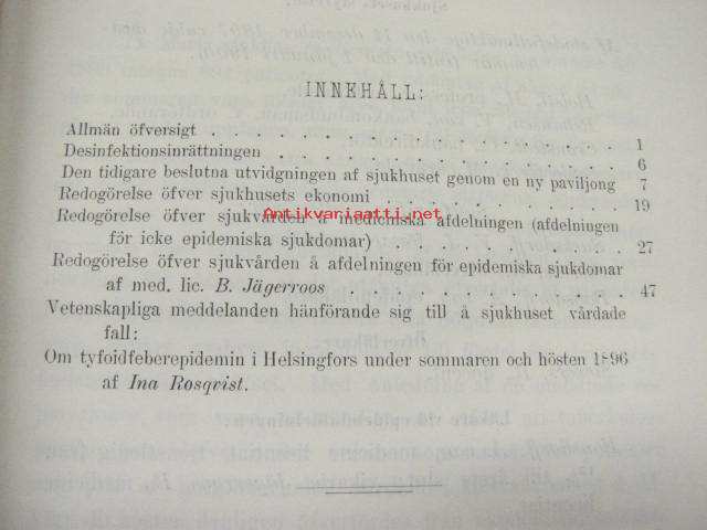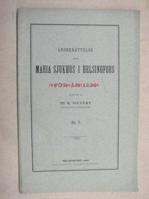 Maria Sjukhus i Helsingfors Årsberättelse för år 1899 -vuosikertomus