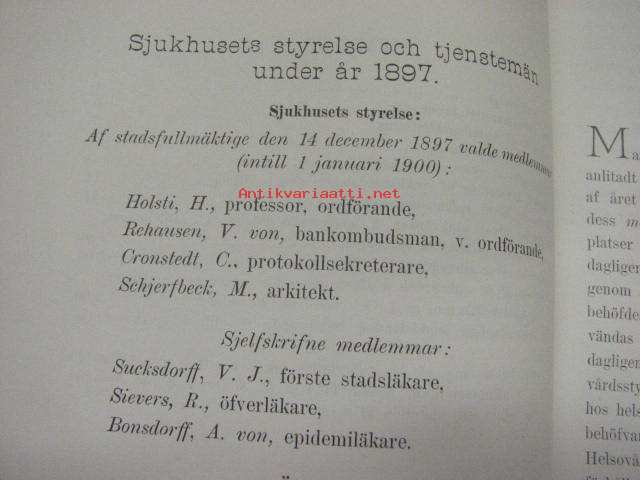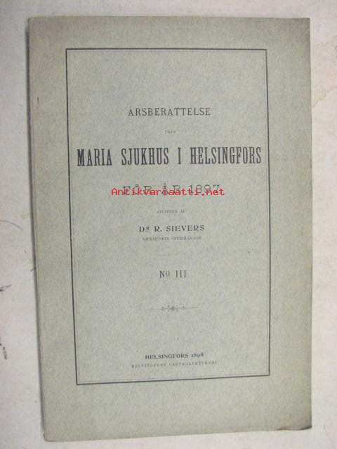 Maria Sjukhus i Helsingfors Årsberättelse för år 1897 -vuosikertomus