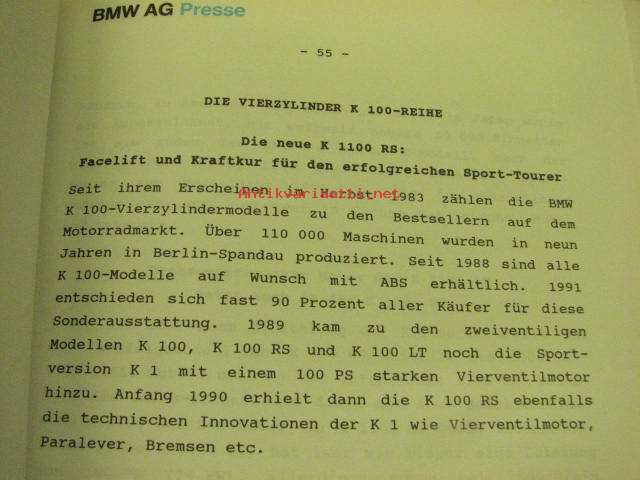 BMW Modelljahr 1993 Motorräder Presse -mallivuoden moottoripyörien lehdistökansio kuvineen