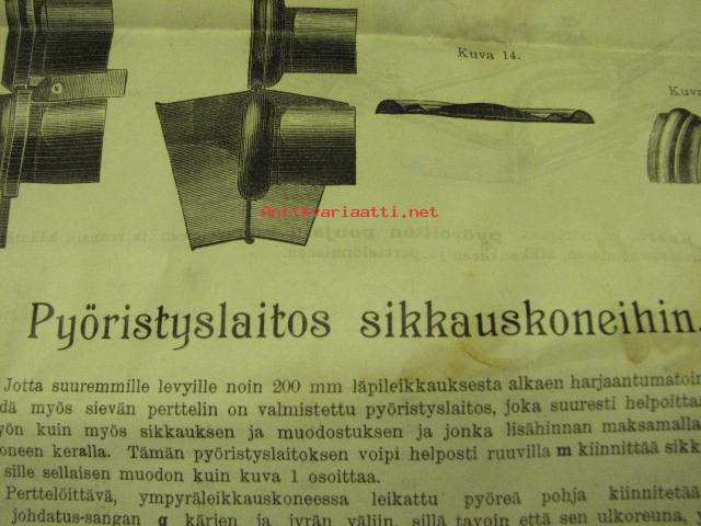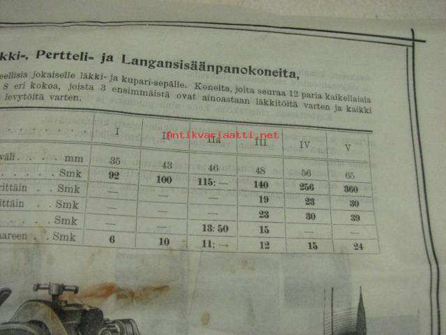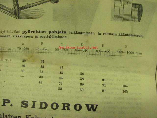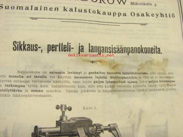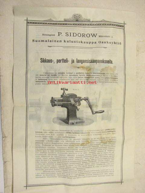Sikkaus-, pertteli- ja langansisäänpanokoneota läkkitöihin (Peltitöihin) P. Sidorow Oy -myyntiesite