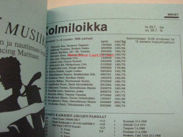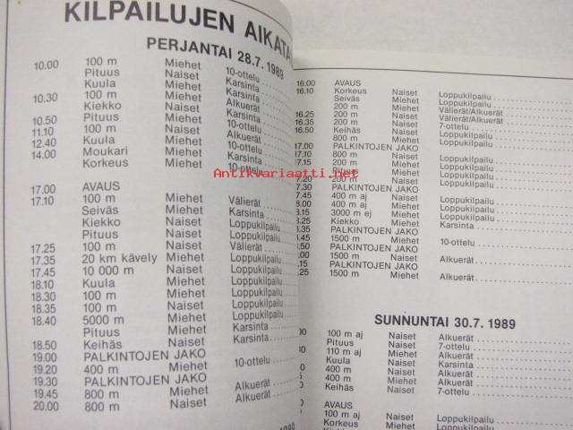 Kalevan kisat Turussa 28.-30.7.1989 käsiohjelma