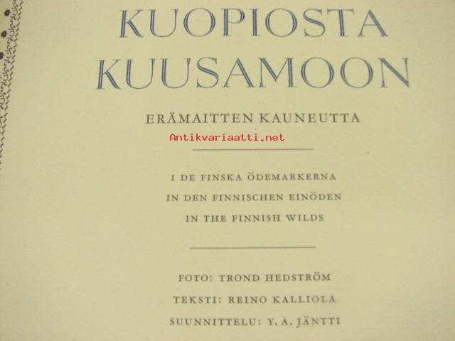Kuopiosta Kuusamoon. Erämaitten kauneutta - I de finska ödemarkerna - In den Finnischen Einöde - In the finnish wild (Foto: Trond Hedström; Teksti: Reino Kalliola; Suunnittelu: Y.A. Jäntti)