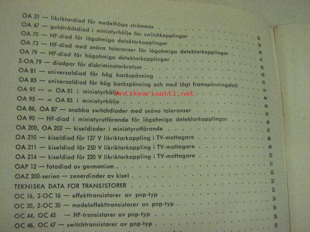 Philips Halvledare transistorer och dioder -komponenttiluettelo ruotsiksi