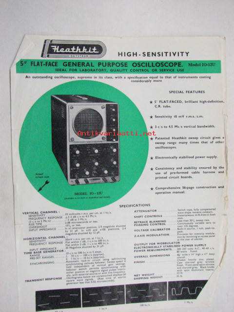 Heathkit High-Sensitivity 5" Flat-Face General Purpose Oscilloscope model I0-12U -myyntiesite