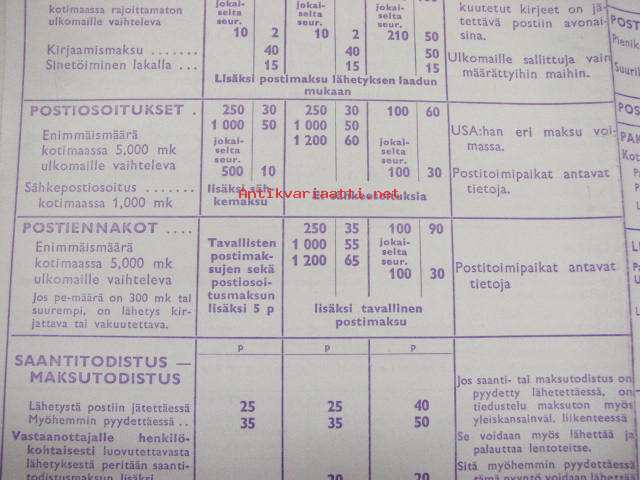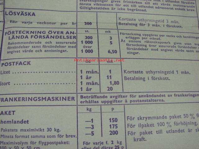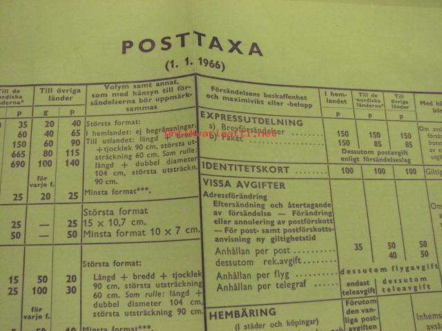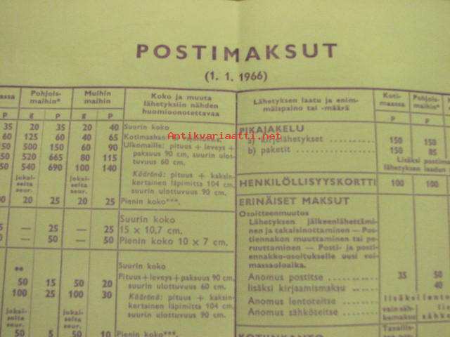 Postimaksut / Posttaxa 1.1.1966 -hintajuliste