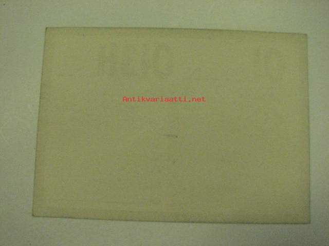 | Saatavilla | 1 kpl | | Sivuja | 2 | | Kunto | K3 | | Sidonta/painoasu | Pienpainate | | Kielet | Suomi |