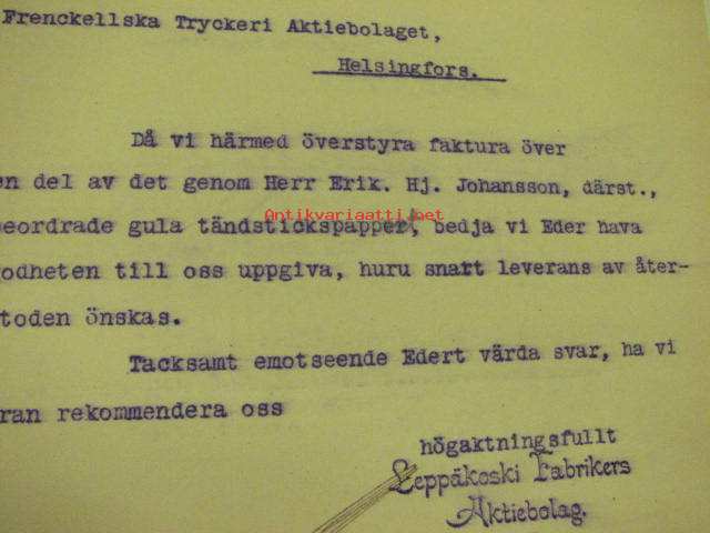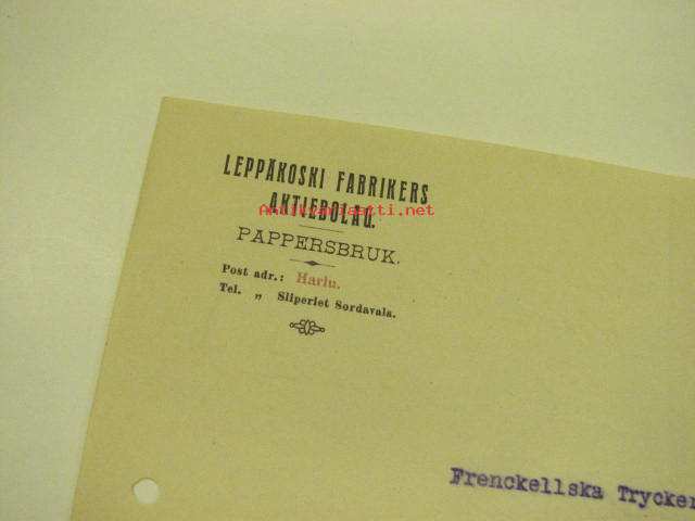 Leppäkoski Fabrikers Ab, Harlu, Sortavala, 9.12.1911 -asiakirja