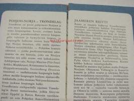 | Saatavilla | 1 kpl | | Julkaisuvuosi | 196? | | Kunto | K3 | | Sidonta/painoasu | Pienpainate | | Kielet | Suomi |