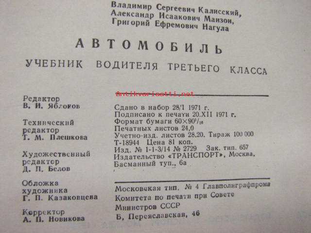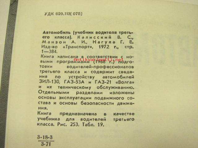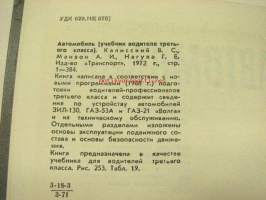 Avtomobil - yzebnik voditelja tretovo klacca -venäjänkielinen autojen teknillinen oppikirja (kolmas "luokkka" tai taso)