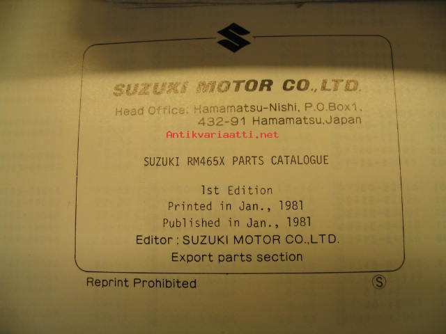 Suzuki RM465X parts catalogue -varaosaluettelo