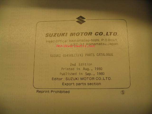 Suzuki GS450LT GS450LX parts catalogue varaosaluettelo