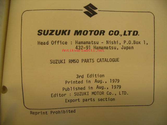 Suzuki RM50C 50N 50T 1980 parts catalogue varaosaluettelo