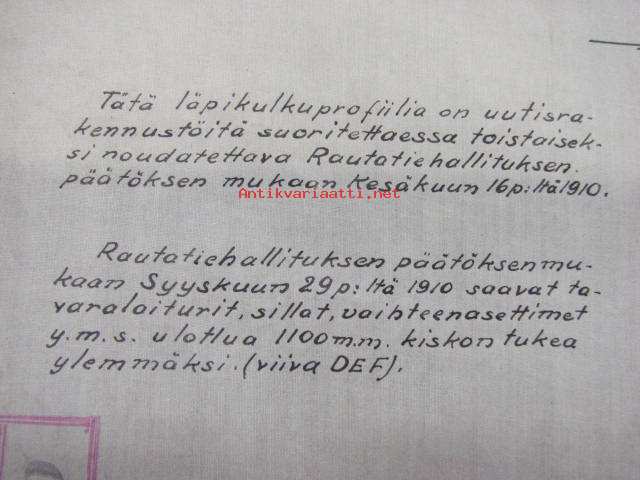 Uuden gabariitin ehdotus Suomen valtionrautateille -piirustus