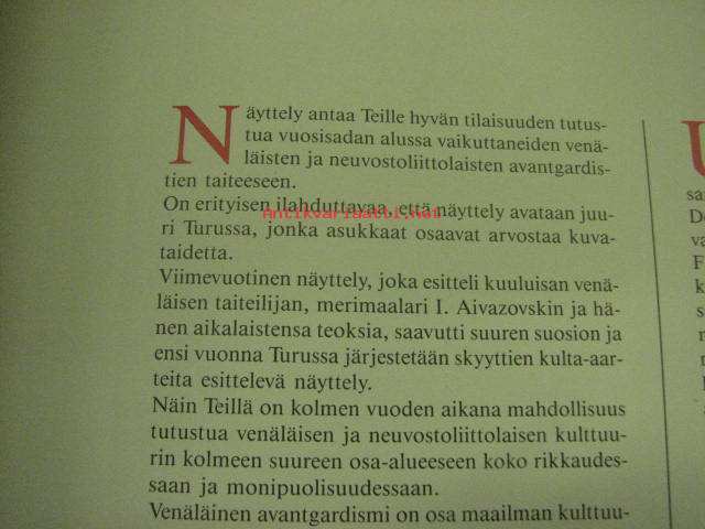 Näyttelyluettelo Avantgarde 1.8. - 1.10.1989 Turun Taidemuseo. Tekstit myös ruotsiksi ja englanniksi.
