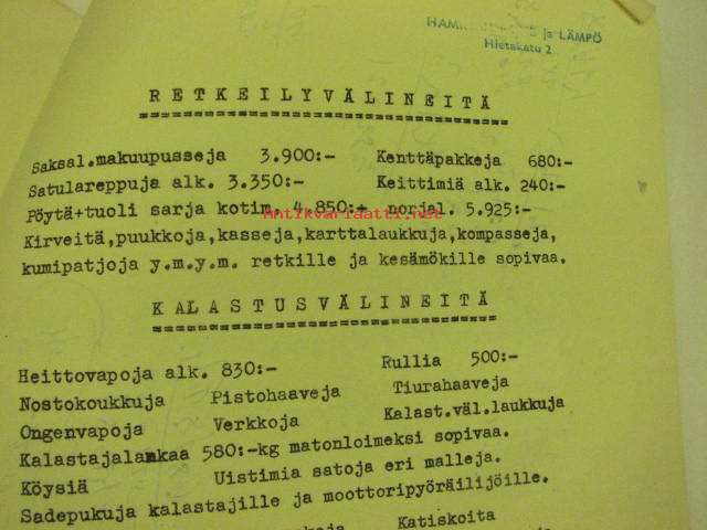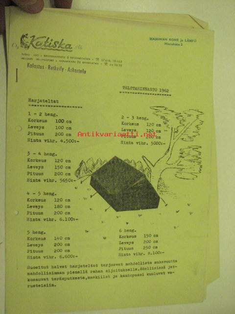 | Saatavilla | 1 kpl | | Julkaisuvuosi | 1962 | | Sivuja | 5 | | Kunto | K3 | | Sidonta/painoasu | Muu | | Kielet | Suomi |