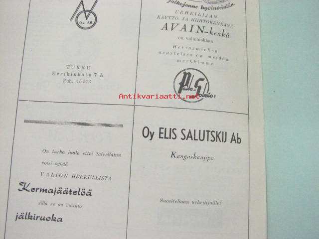 Turun Riento jouluna 1950 -urheiluseuran joulujulkaisu