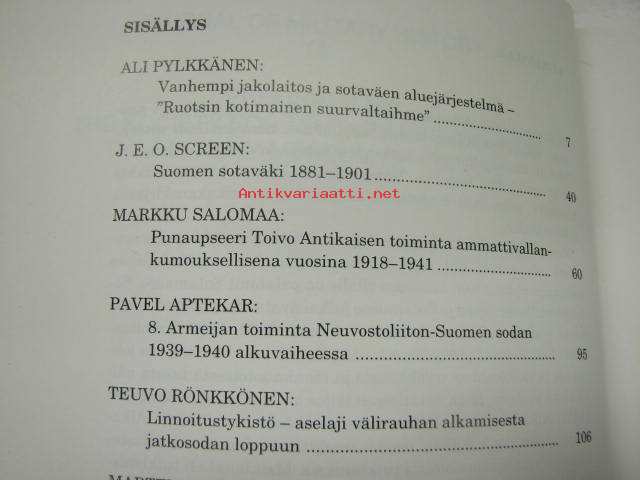 Sotahistoriallinen aikakauskirja 14 1995 sis. mm. artikkelit; Suomen sotaväki 1881-1901, Punaupseeri Toivo Antikainen - toiminta ammattivallankumouksellisena